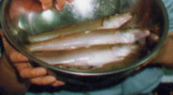 瀬渡しで磯まで行きました。 今日はキス釣りの解禁日です。 漁師が網入れをする前にチャレンジしました。 あまり釣れませんがきれいなキスが釣れました。 塩焼きにして食べました。