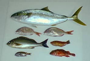 ●メモ 再びMさんに連れていっていただきました。 大漁でした。 こんな大物を釣ったのは初めてなので大喜びでした。 40cmくらいのシイラもかかりましたが、もう少しのところでばれてしまいました。 引きはすごく強かったです。 フエフキダイは珊瑚礁に住み珍しい魚で、めったに釣れないそうです。 魚を料理するのが大変でした。 とにかくあまり慣れていないのでさばくのに一苦労でした。 お刺身、塩焼き、煮付け、おみそ汁にして食べました。