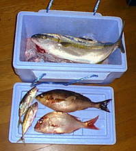 浮き流しでヒラマサ、タイの大物狙いです。 数は上がりましたが、良型の高級魚をつり上げる瞬間は格別です。 魚はお刺身、塩焼き、おみそ汁にしました。 やはり新鮮な天然の魚なのでとても美味しかったです。